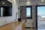 Designed with refined minimalism and warm Cycladic tones, the suite invites you to unwind in an atmosphere of effortless elegance.Take in sweeping sea views from your private haven, where the tranquil Aegean horizon becomes part of the experience. The spacious, modern bathroom promotes complete relaxation, while the indulgent indoor Jacuzzi offers a serene escape for moments of pure rejuvenation. Elegant suite with indoor Jacuzzi and stunning Aegean views.